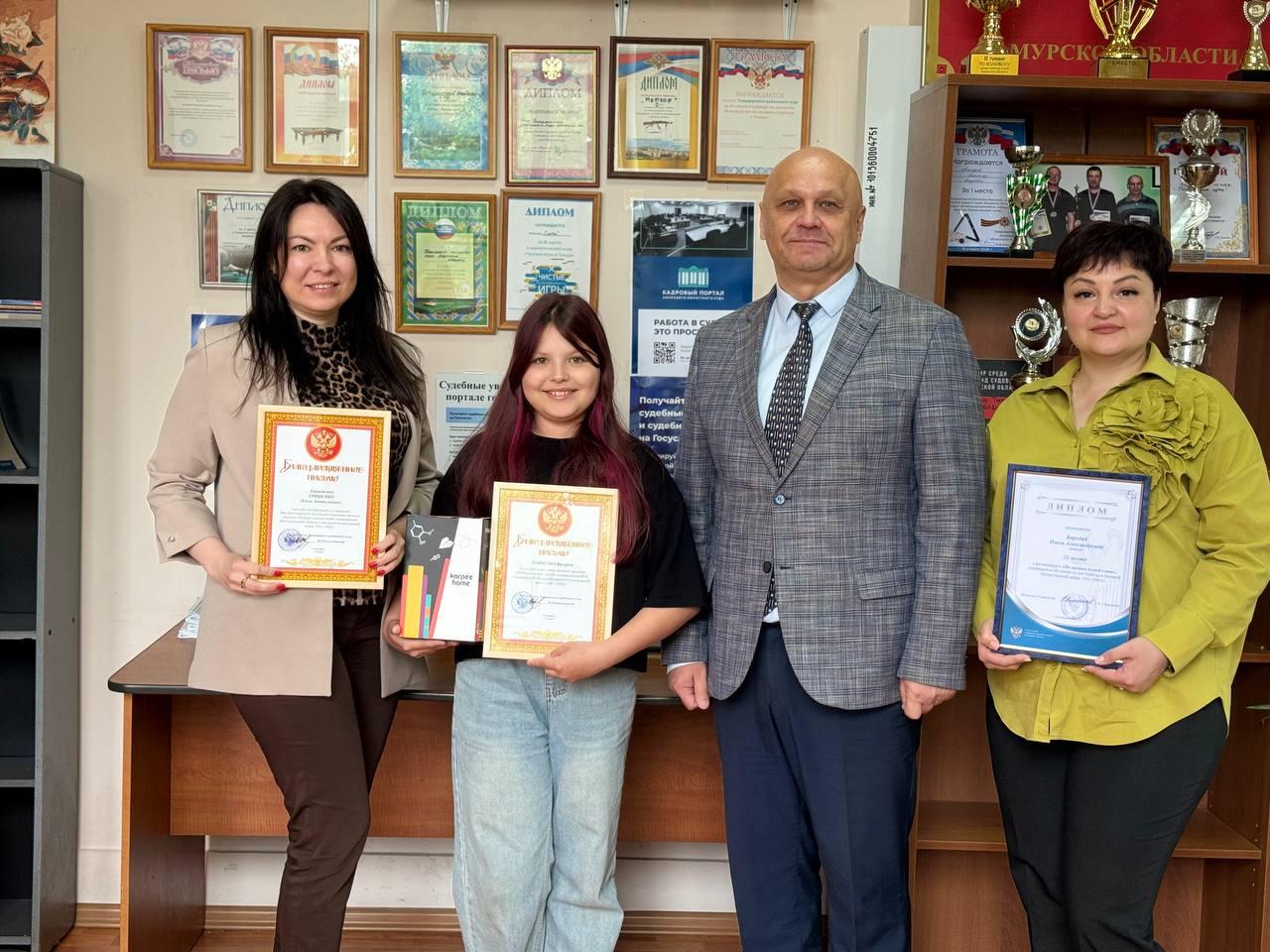 | Патриотизм и творчество: в Тындинском районном суде награждены участники выставки и фотоконкурса в честь 80-летия Великой Победы в Амурской области. | версия для печати |